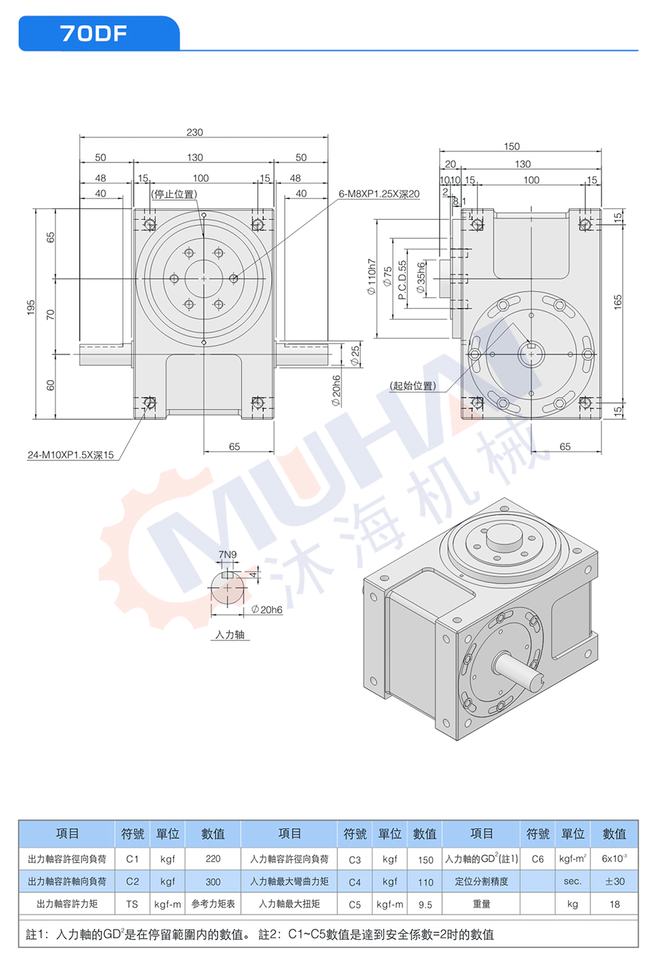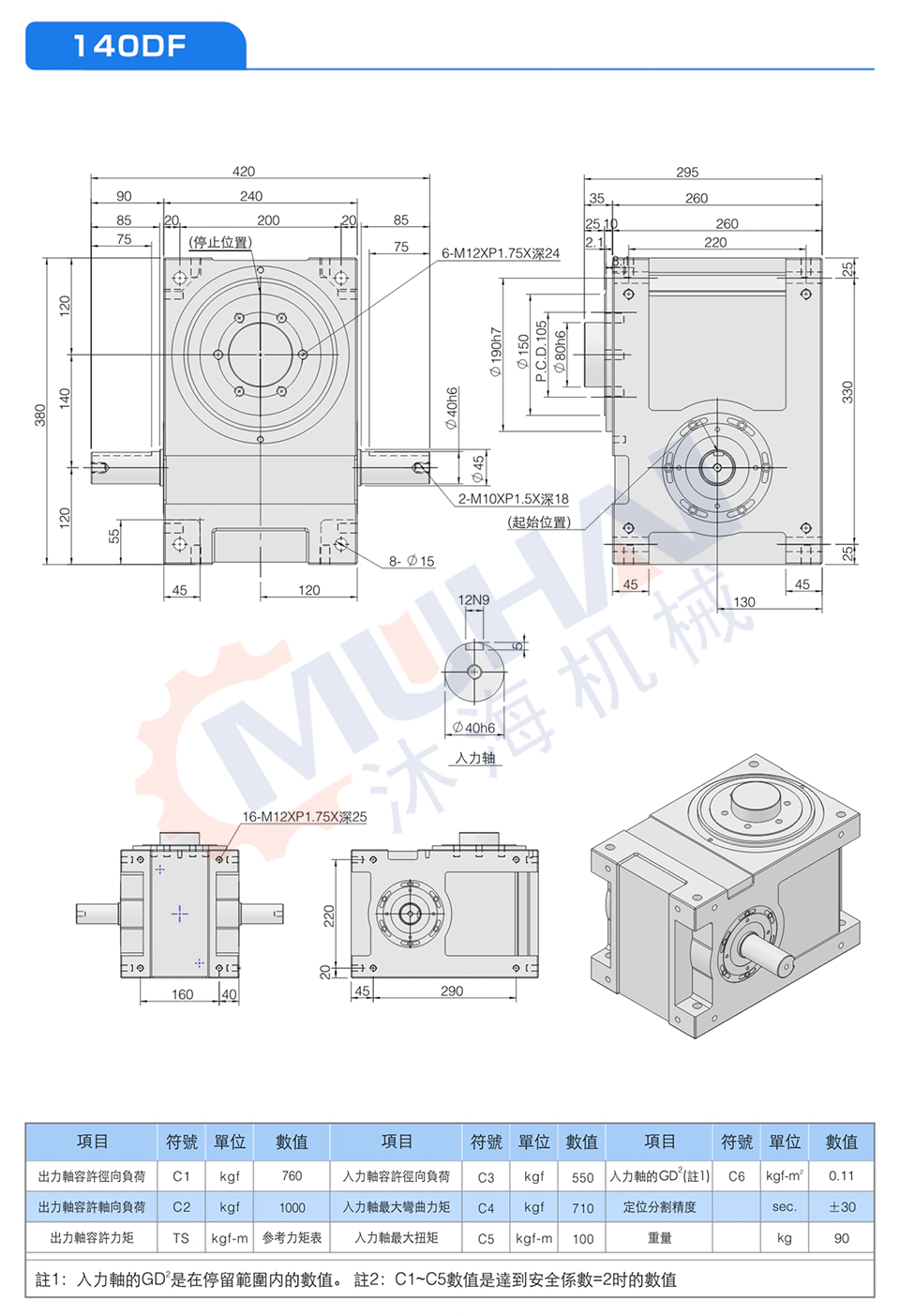 此機種具有重負荷性,可承受較大之垂直徑向或軸向壓力,為本公司專業設計工程師群,經歷多年針對盤式結構需要設計而成,其輸出軸為面盤式設計,有凸緣中心、盤面螺孔、定位、銷孔、固定面寬大、可使平面度及穩固性,更具堅固平穩。能適用于較大負荷之回轉式圓盤驅動場合,此系列機種被廣泛使用在各類盤式加工機械,及類似機種之產業機械、自動化間歇驅動部、驅動圓盤。